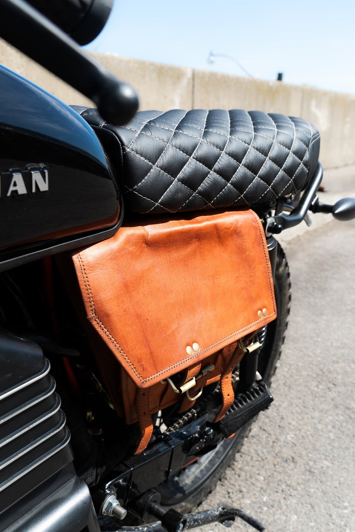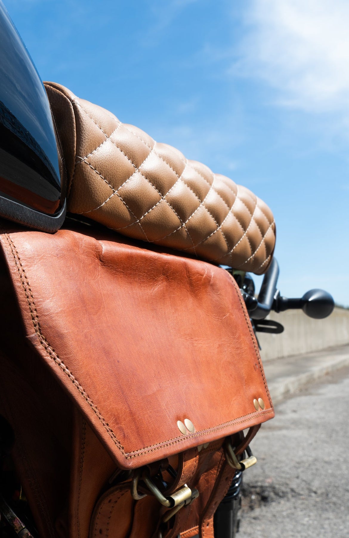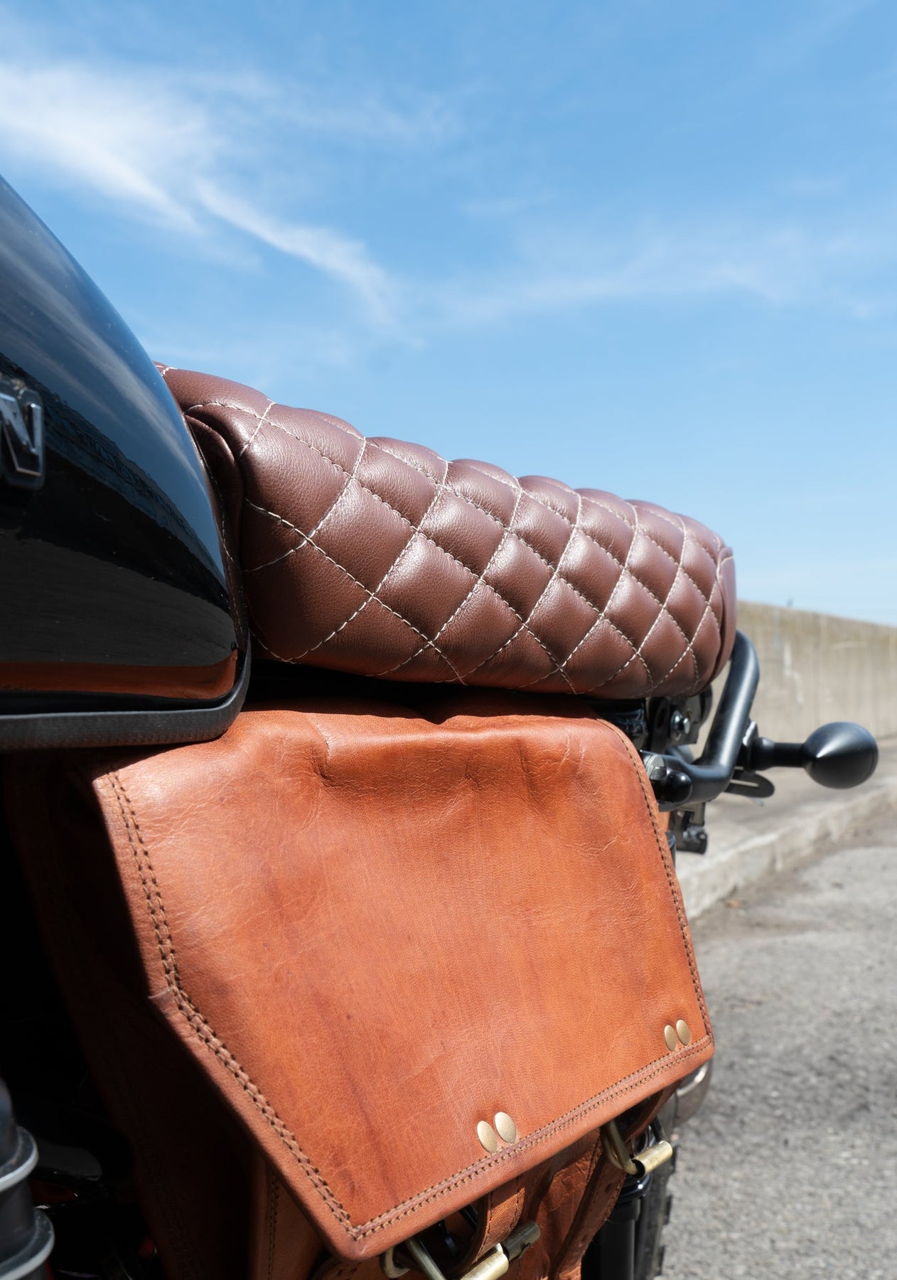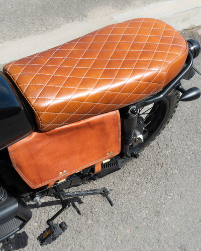 While leather looks the best, vinyl is recommended if you plan on riding in the rain, as leather seats retain water and can stay moist for a day or so afterward.