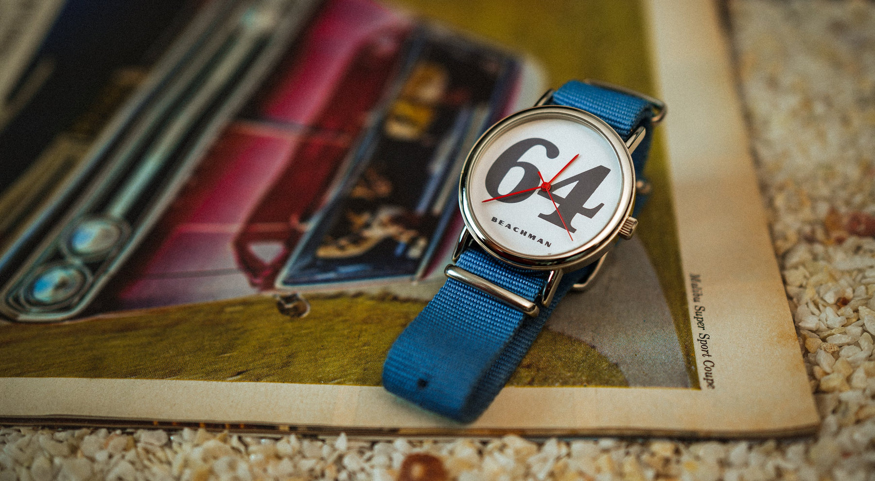 Each watch comes with 3 NATO style straps; blue, green, and sand, to match the colour of your '64's gas tank.